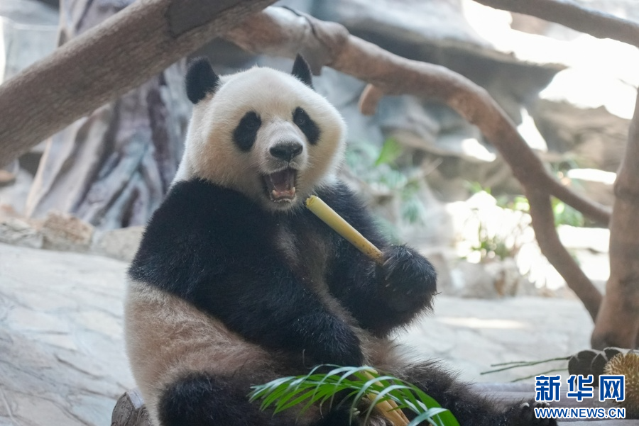 大熊猫青花憨态可掬的模样让人忍俊不禁。新华网发(王成杰 摄)