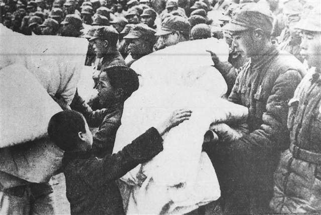 重庆市民向军队捐献被服。(重庆中国三峡博物馆供图)