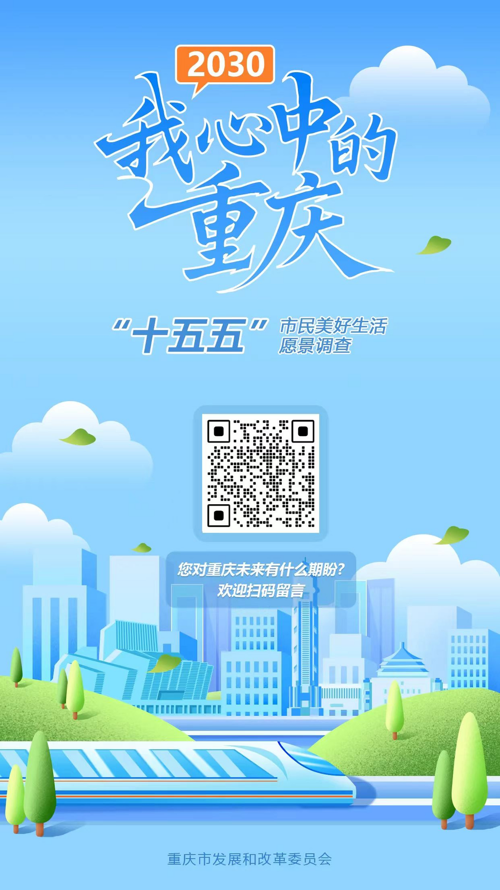 ——公众号建言,关注“重庆发改”微信公众号,点击下方互动进入“2030,我心中的重庆”专区或在对话框中回复“十五五”参与;
