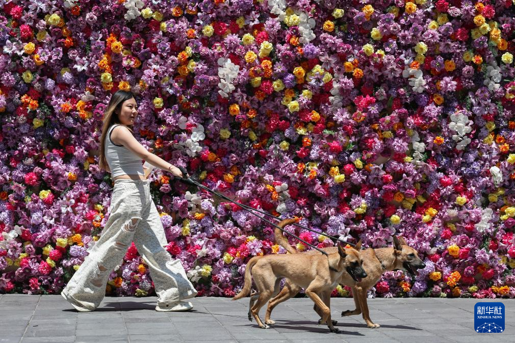8月2日,重庆市江北区,市民牵狗在烈日下行走。新华社记者 陈诚 摄