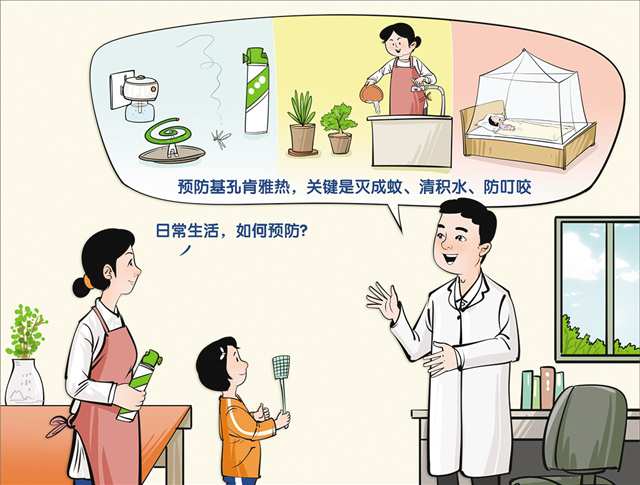基孔肯雅热是由基孔肯雅病毒引起,主要经埃及伊蚊或白纹伊蚊叮咬传播的病毒性传染病。潜伏期一般为1—12天,多为3—7天。临床表现常见为突然发热和关节疼痛,关节疼痛主要累及手腕、踝趾等小关节,也可涉及膝和肩等大关节,剧烈的关节疼痛可导致行动困难。其他症状还包括头痛、肌肉痛、关节肿胀、皮疹、恶心、疲劳等。