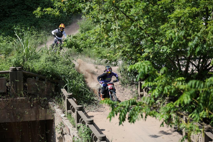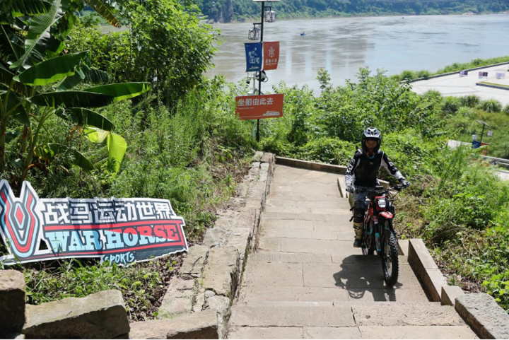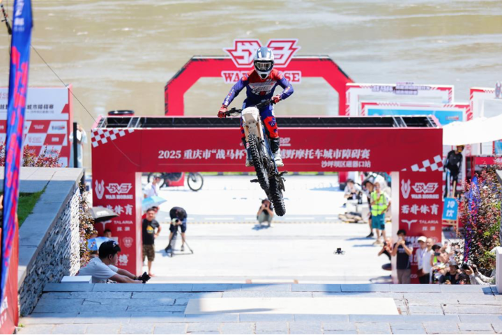 比赛中,参赛车手需驾驶新能源越野摩托车,挑战以最短起跳距离飞跃跨度达30米、坡度45度的“磁器口龙门石梯”。 赛事创造性地将高难度越野摩托车障碍赛道嵌入国家4A级旅游景区磁器口古镇,将汽摩运动赛事的激烈与磁器口的古韵、繁华相互融合,为参赛选手、现场观众与汽摩运动爱好者打造了沉浸式的竞技场景与文化体验。