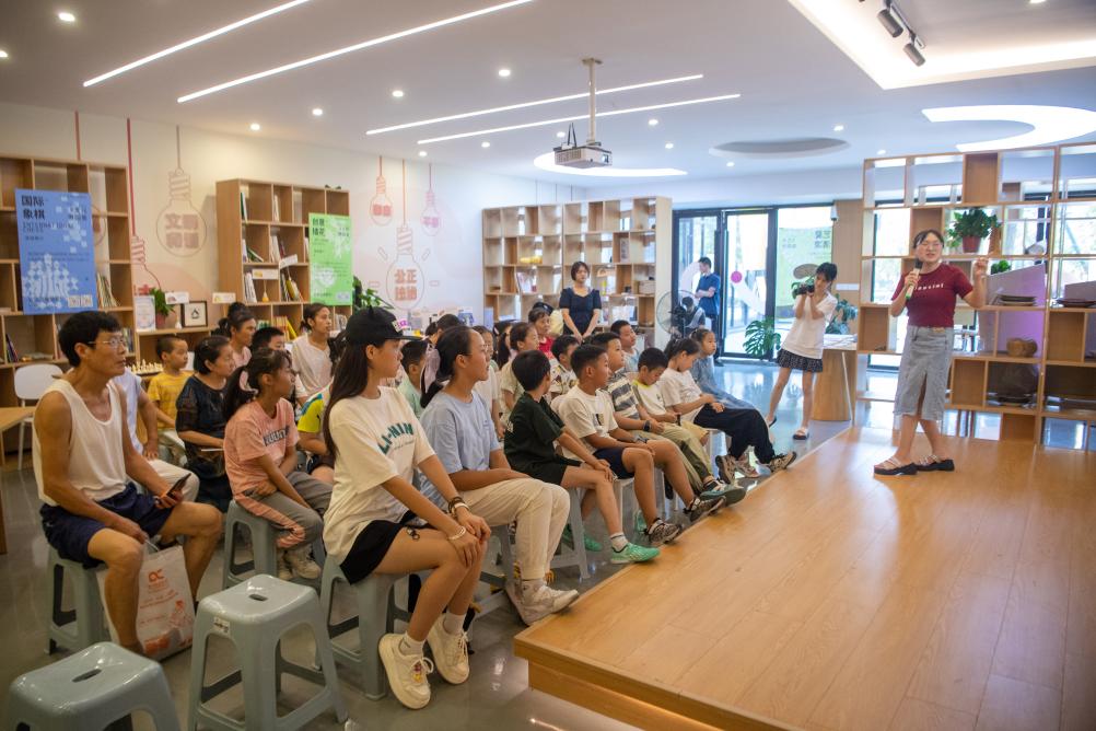 7月31日,小朋友和家长在重庆市两江新区大竹林街道竹林社区学院参加文化艺术游园会活动。
