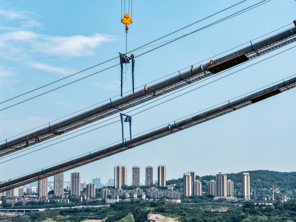 自5月31日大桥基准索股牵引过江以来,仅用时两个月便完成了主缆全部338根索股的架设工作。在重庆的连续高温天气下,施工团队通过智能化测温设备,实时监测主缆应力及温度变化,并据此调整施工参数,有效减少因温度差异引起的受力不均问题,确保主缆在架设过程中保持良好的应力状态,为大桥的安全稳固奠定了坚实基础。