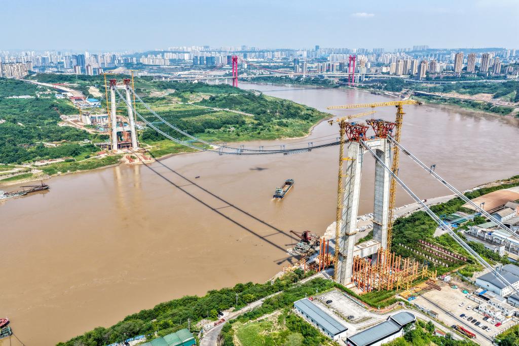 新华社重庆7月30日电(记者唐奕)由重庆城投集团投资、城投建设公司组织建设、中国铁建大桥局承建的黄桷沱长江大桥30日顺利完成主缆架设工作。这标志着大桥建设即将进入钢桁梁吊装工序。