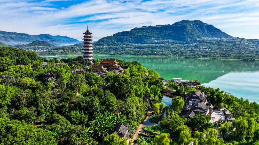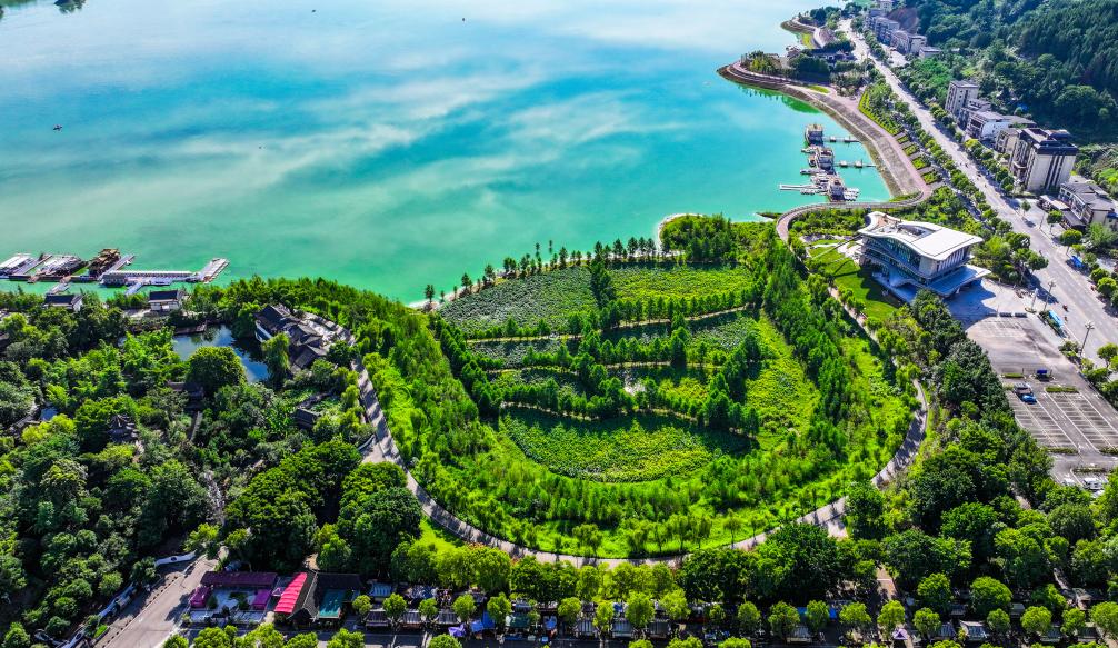 这是7月2日拍摄的重庆开州汉丰湖及其周边景象(无人机照片)。