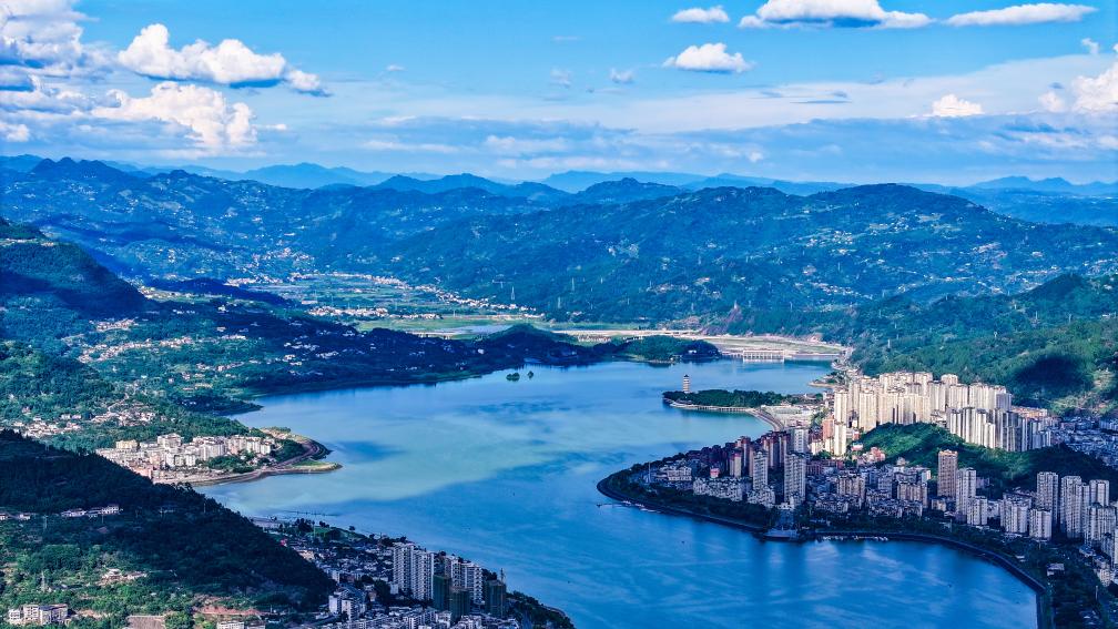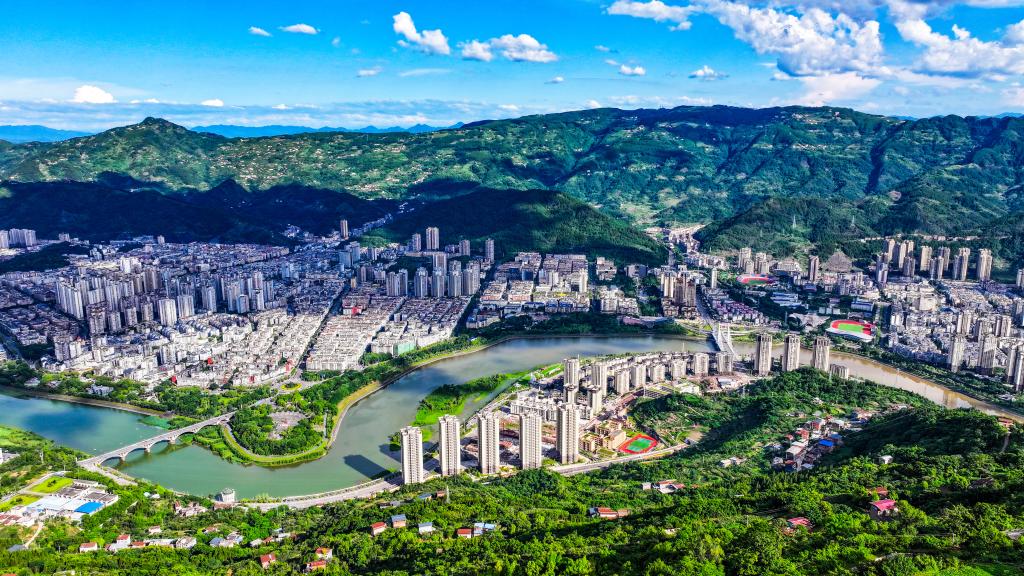 这是7月3日拍摄的重庆开州城区景象(无人机照片)。