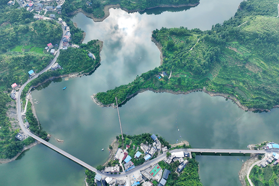 夏日里的金家坝水库绿意盎然,一幅灵动的自然画卷徐徐展开,尽显生态之美。新华网发(陈碧生 摄)