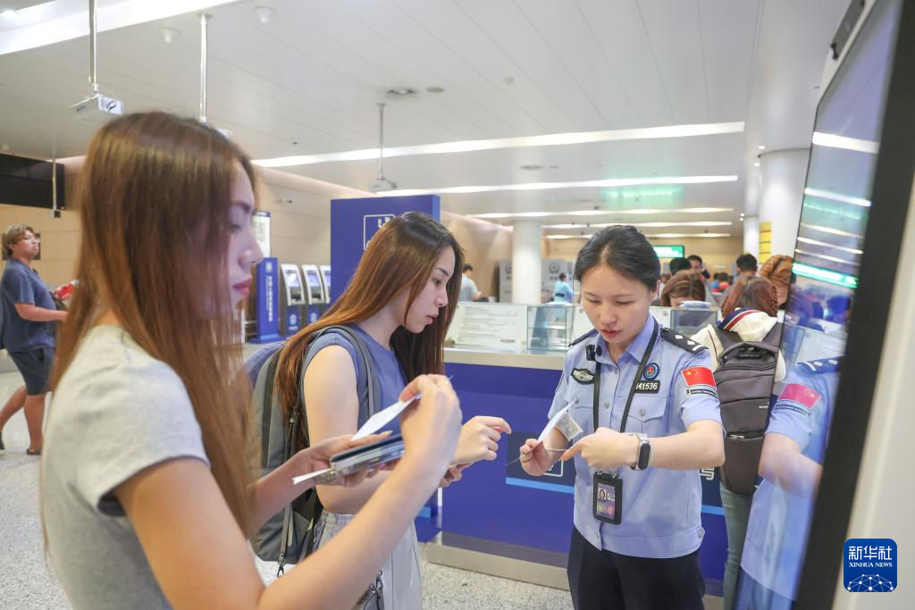 7月8日,在重庆江北国际机场,重庆出入境边防检查总站民警查验旅客信息。