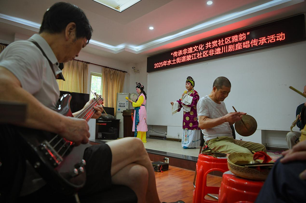 川剧座唱,像一本活着的地方志,记录着水土老街的百年沧桑,承载着一代人的情感与记忆。新华网发(汪彦彤 摄)