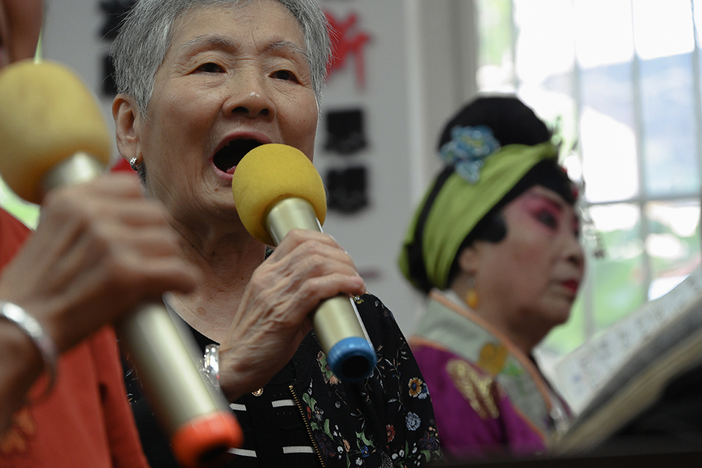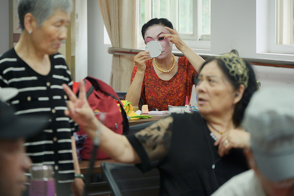 每月固定的那几天,总有一群老人循着锣鼓声,走进那间传来响亮唱腔的小屋。在正式演出开始前,来看演出的老人们有时也会轮流唱上几首,过一把川剧瘾。新华网发(汪彦彤 摄)