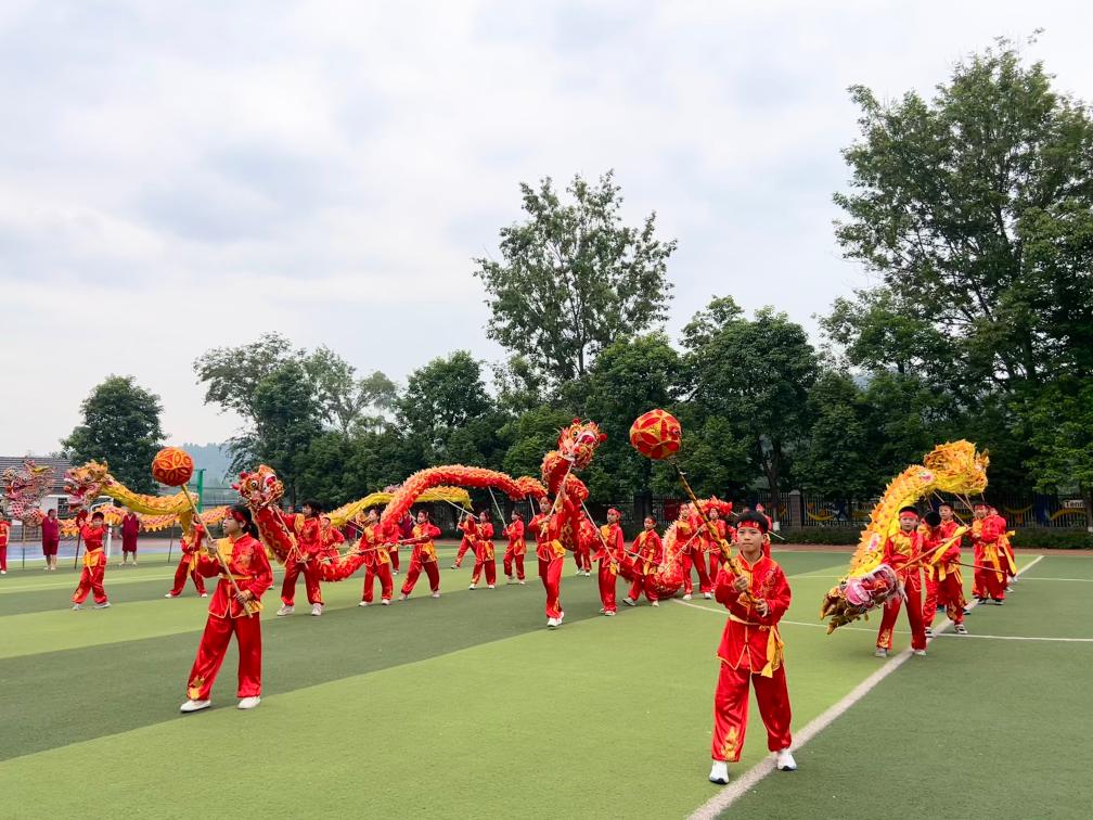 新华社重庆6月14日电(记者周滨滔)“咚咚锵!”鼓点声震天响,领头的四名小学生脸颊通红,额头上沁出细密的汗珠,竹竿头上的龙宝在他们手中灵活转动,四条金红相间的火龙在操场上舞动。龙头高高昂起,龙眼炯炯有神,龙身随着节奏不时上下翻飞,引得围观师生满堂喝彩。