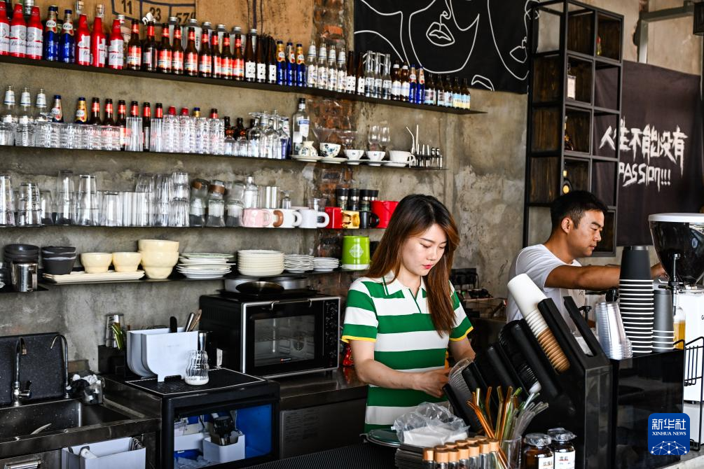 6月11日,重庆巫山一饮品店工作人员在调制饮品。新华社记者 王全超 摄