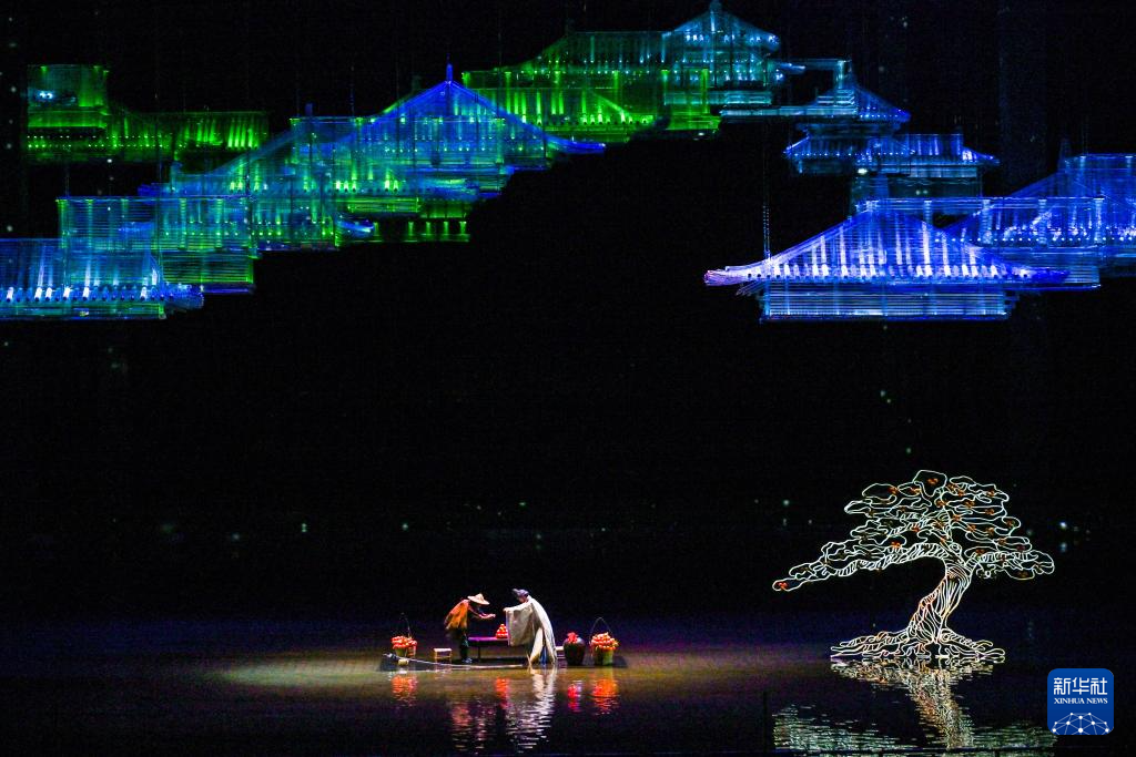 在重庆奉节白帝城·瞿塘峡景区上演的大型诗词文化实景演出《归来三峡》,以中华诗词为主线,将朗诵、演唱、舞蹈等艺术形式与现代舞美手段相融合,将大家耳熟能详的诗词情景还原,让诗词文化“活”起来。 新华社记者 王全超 摄