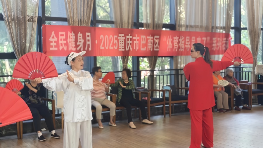 重庆社会体育指导员走进敬老院开展太极扇教学,点亮“银发族”健康生活。