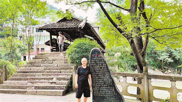 七月十四日,綦江区石壕镇高山村,守桥人陈文涛在红军桥头向记者讲述红军故事。记者 付爱农 摄\视觉重庆
