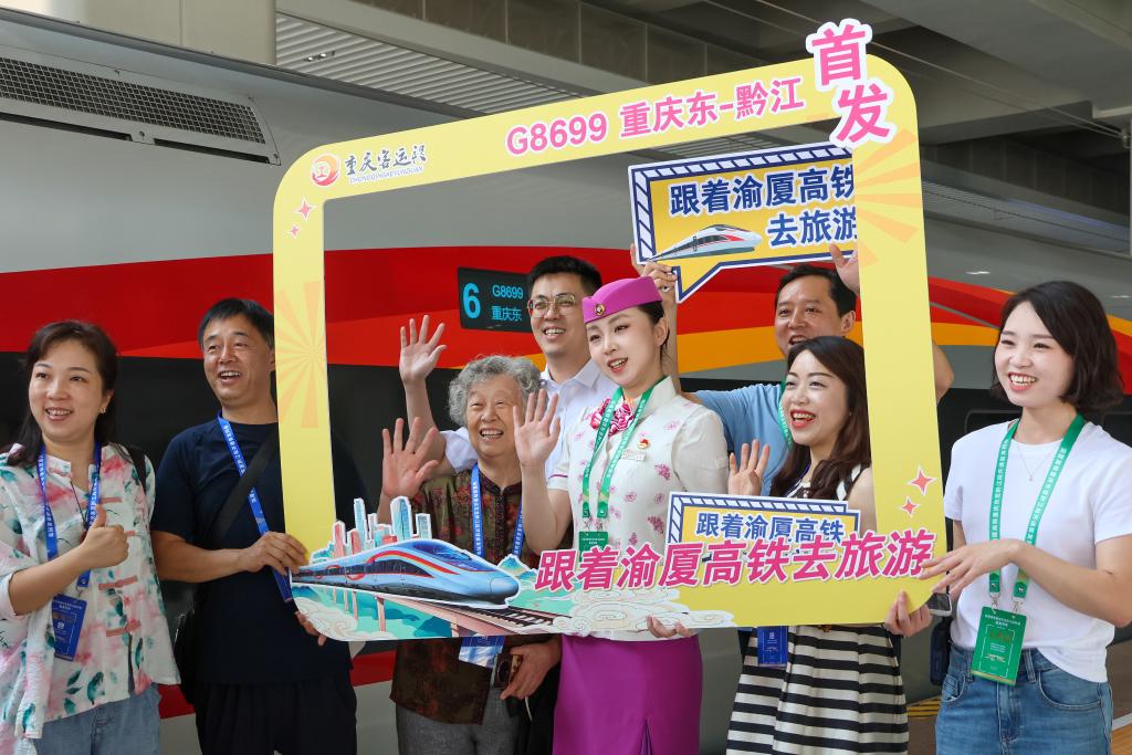 新华社重庆6月27日电(记者黎华玲、雷明宇)6月的山城,因一条高铁的通车而再度“提速”。27日,渝厦高铁重庆东至黔江段正式开通运营,标志着重庆东至长沙段全线贯通,重庆至长沙最快仅需3小时53分。