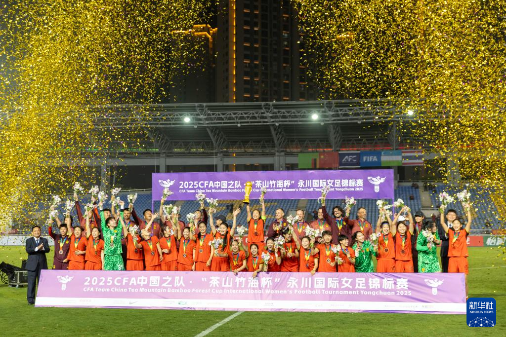 当日,在重庆市永川区举行的2025CFA中国之队·永川国际女足锦标赛决赛中,中国队5比1战胜泰国队,获得冠军。