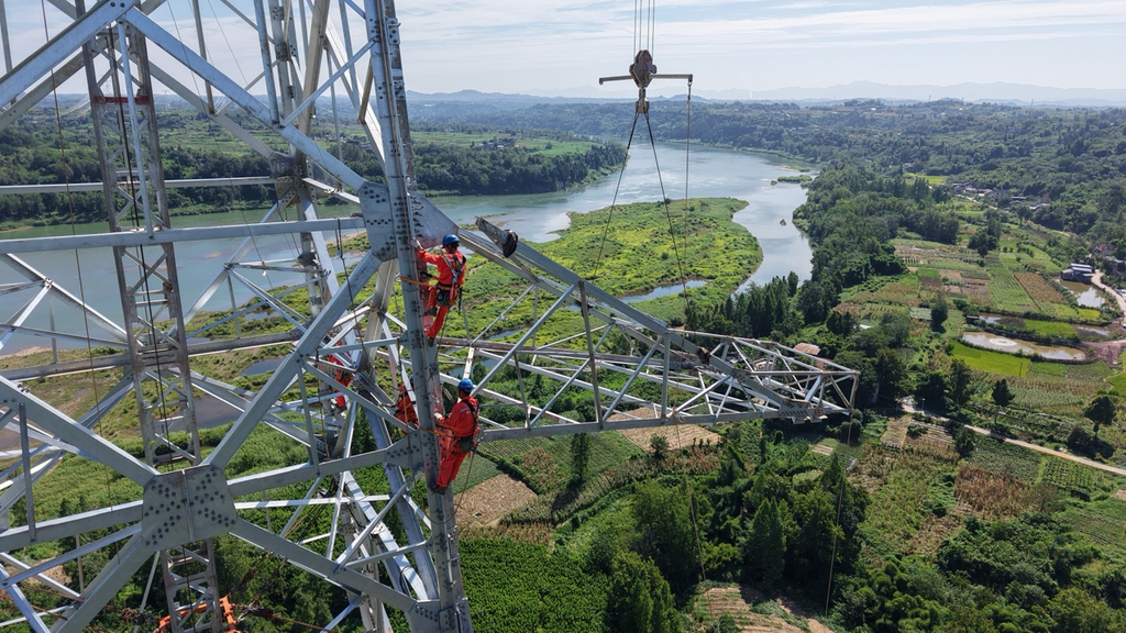 “疆电入渝”特高压配套工程施工现场。受访单位供图