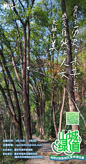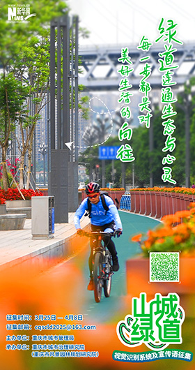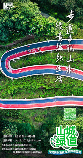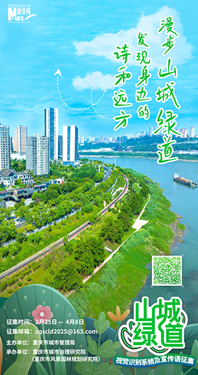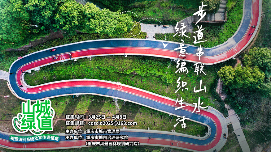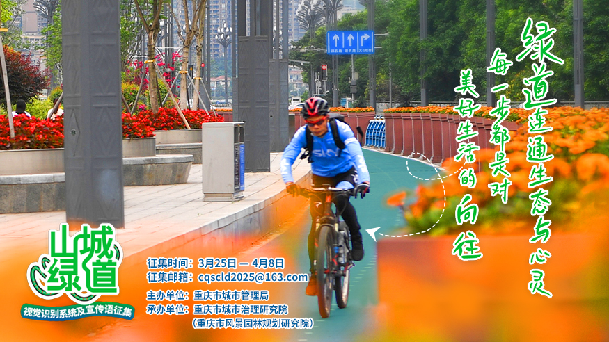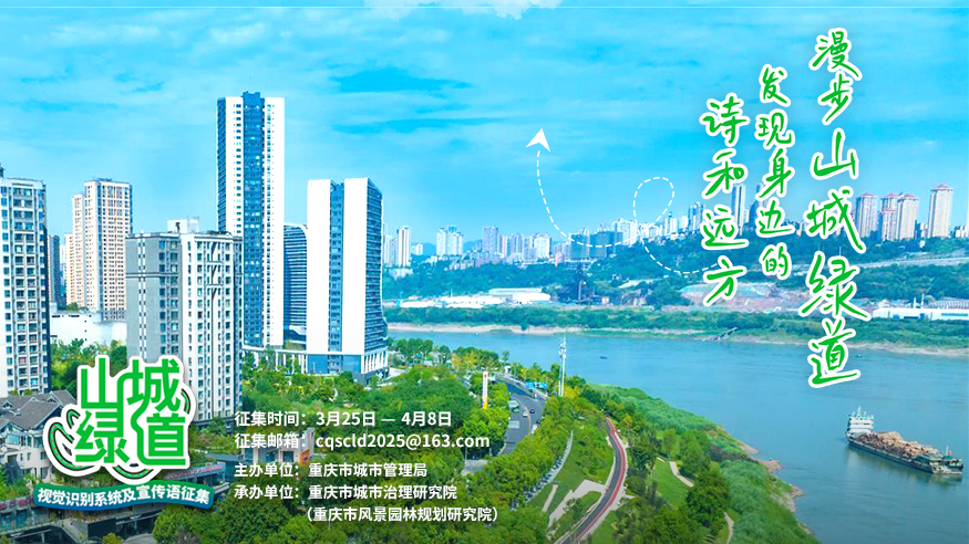3月25日,由重庆市城市管理局主办,重庆市城市治理研究院(重庆市风景园林规划研究院)承办的重庆山城绿道视觉识别系统及宣传语征集活动启动。